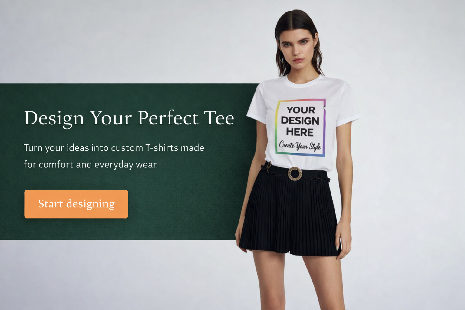 Start designingOur goal is simple: help you design custom T-shirts that stand out and feel great every day.